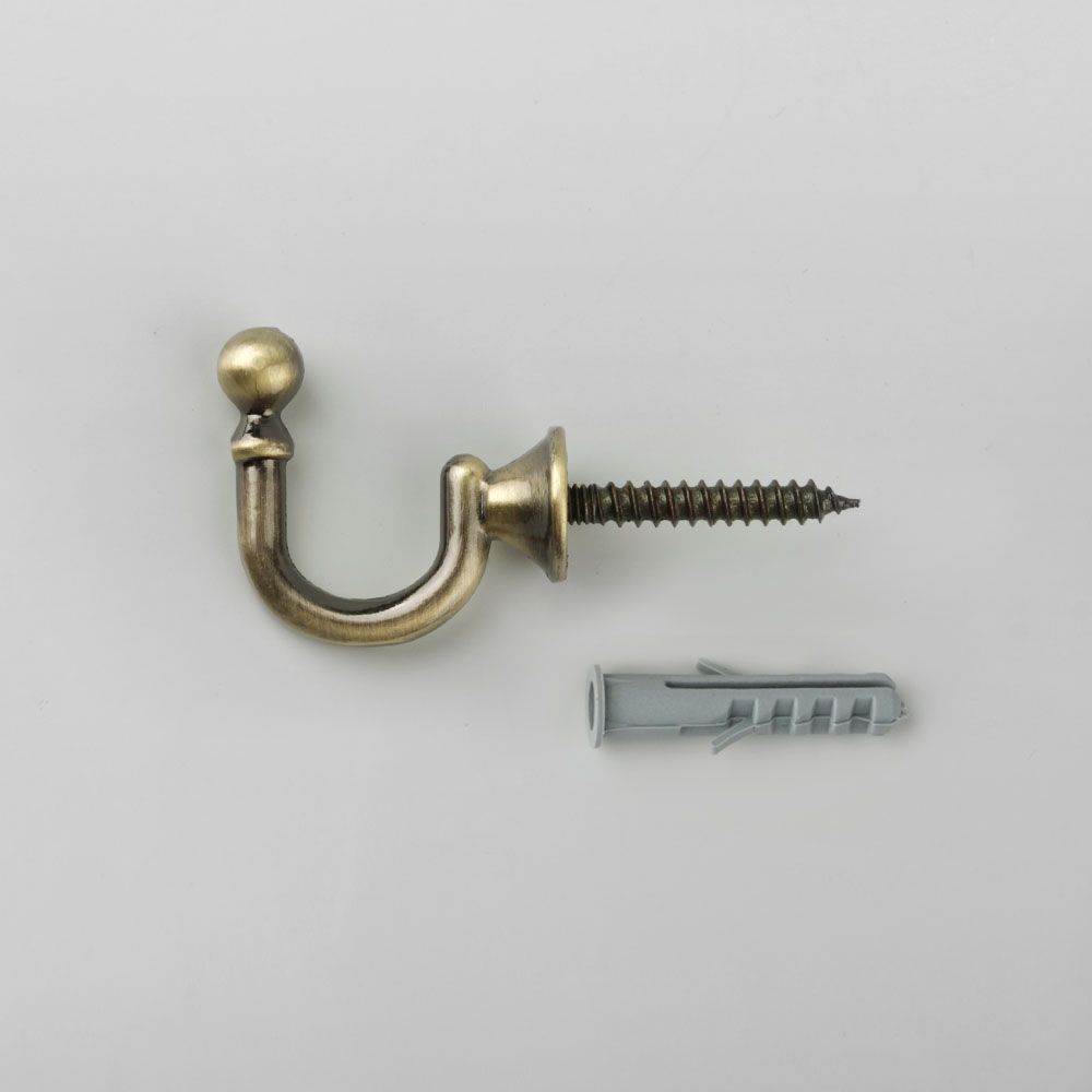 Крючок винтовой имеет настенный вариант крепления и размещается по бокам оконного проема.
