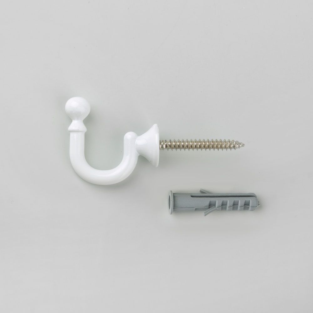 Крючок винтовой имеет настенный вариант крепления и размещается по бокам оконного проема.