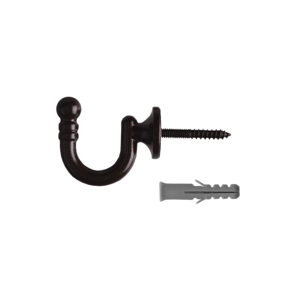 Крючок винтовой имеет настенный вариант крепления и размещается по бокам оконного проема.