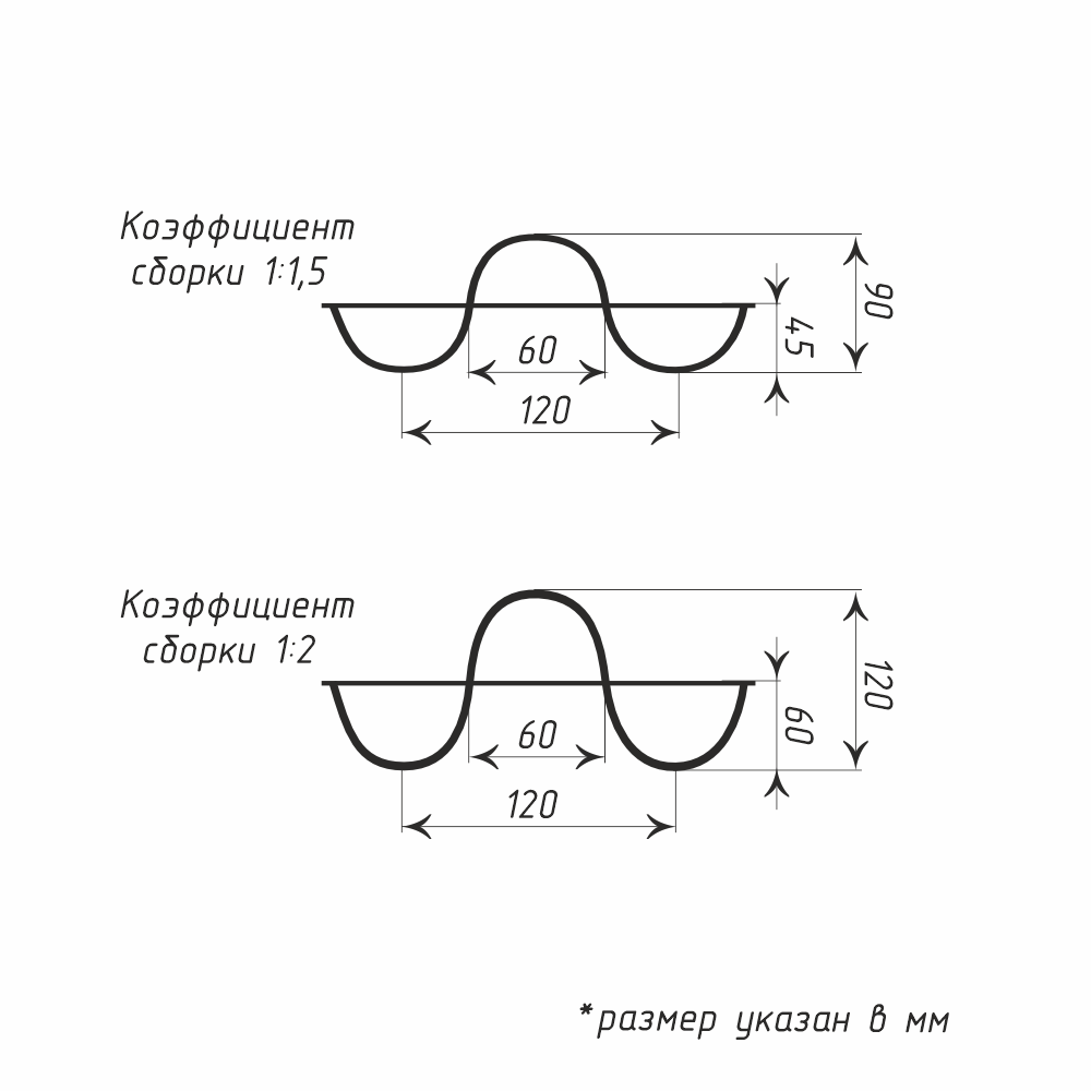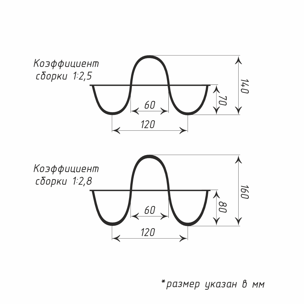 Разнообразие волн – глубина складок от 45 мм (нежные волны) до 160 мм (выразительные драпировки)
