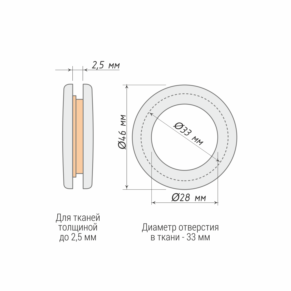 | Диаметр отв. в ткани (мм) | 33 |