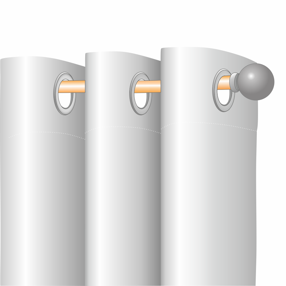 Толщина занавесок, совместимых с данными люверсами, не должна превышать 2,5 мм.