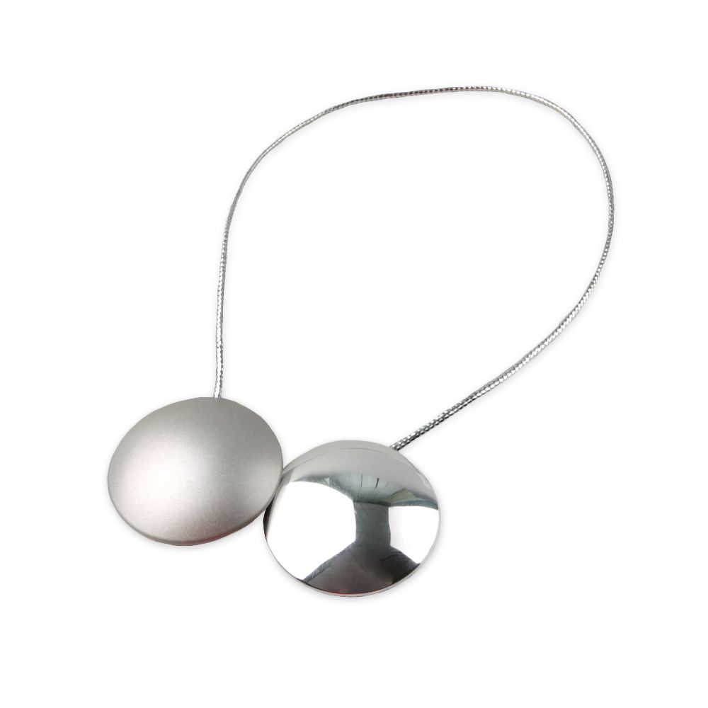 Два круглых пластиковых магнита соединены прочным шнуром. Благодаря гибкости такой подхват отлично задрапирует штору в самые фантастические складки и создаст живописную оконную композицию.