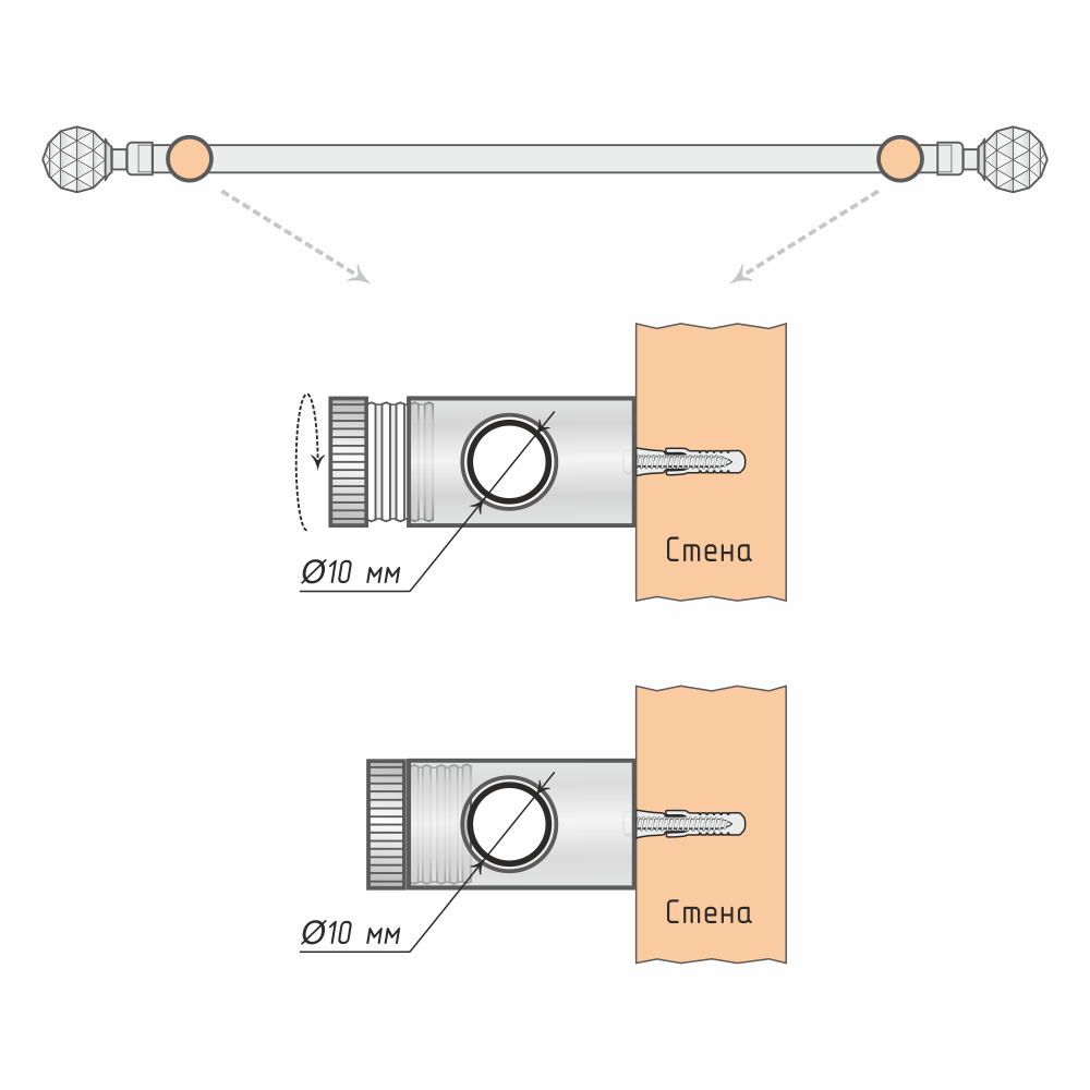 Крепежные элементы и кронштейны для установки карниза входят в комплект.