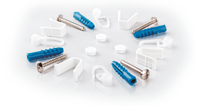 В комплект крепежей входит всё необходимое для устойчивого, безопасного и простого крепления пластиковой «шины» к потолку и для размещения на ней занавесок. Количество деталей в наборе зависит от длины приобретаемой шинной планки.