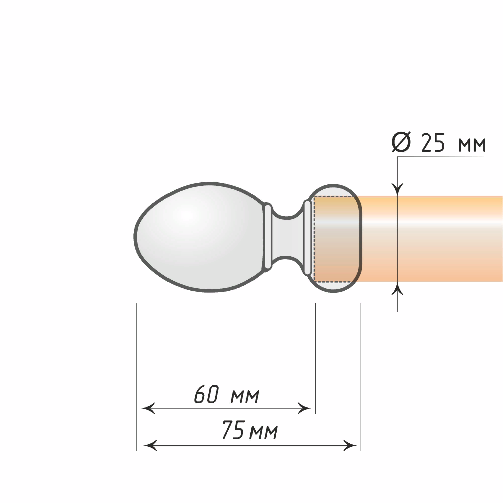 Модель данного аксессуара разработана дизайнером компании Olexdeco. Аналогов ему Вы не найдете нигде. Этот наконечник премиум-класса достаточно небольшого размера - 60 мм, то есть если длина трубы 200 см, то общая длина оконной конструкции составит 206 см, это необходимо учитывать.