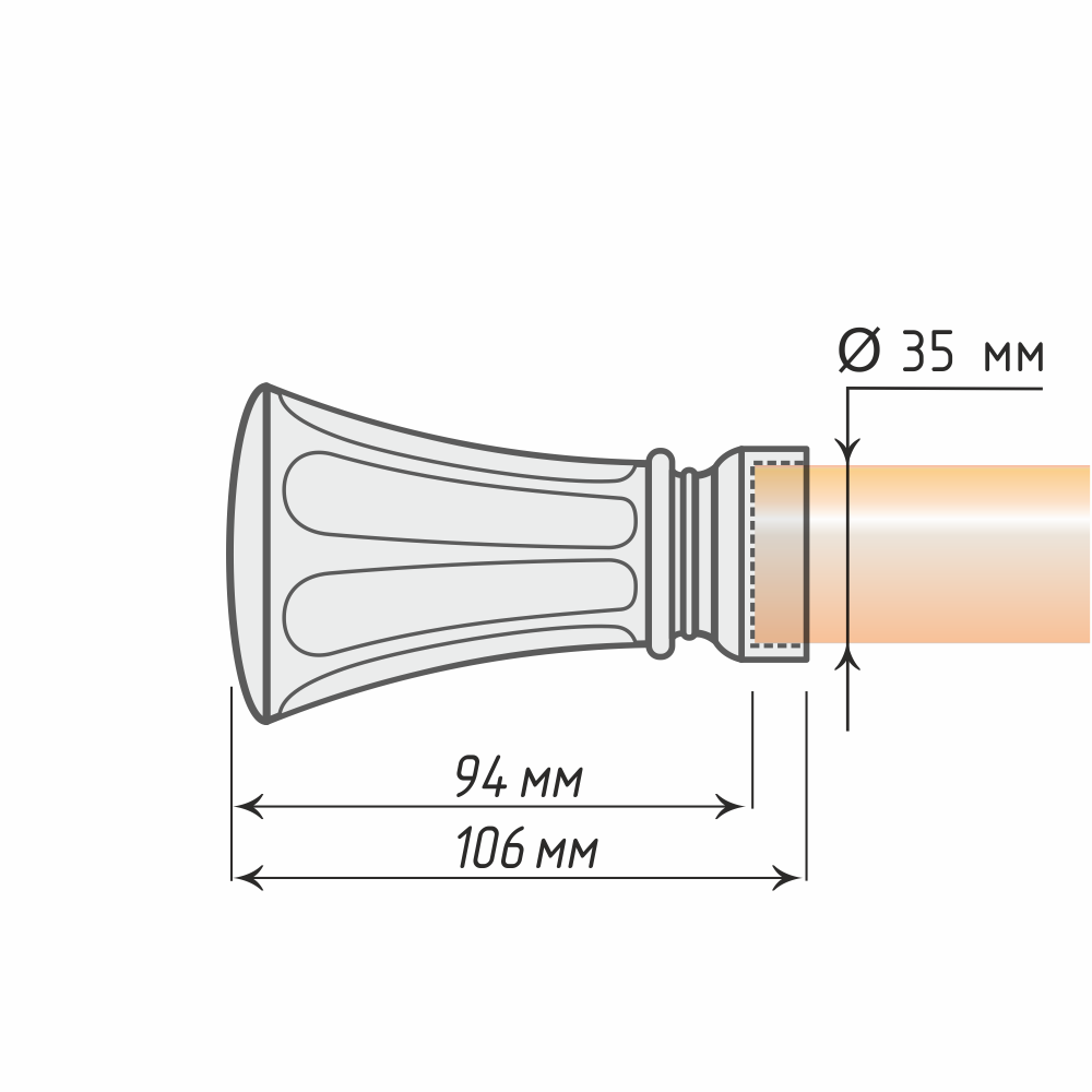 Простой силуэт наконечника «Фанфан» весьма удачно сочетается с изящным, даже игривым декоративным решением. Глубокие борозды на поверхности изделия смягчают строгую геометрическую форму и придают ей сходство с бутоном цветка. Данная модель станет оптимальным элементом классической обстановки.