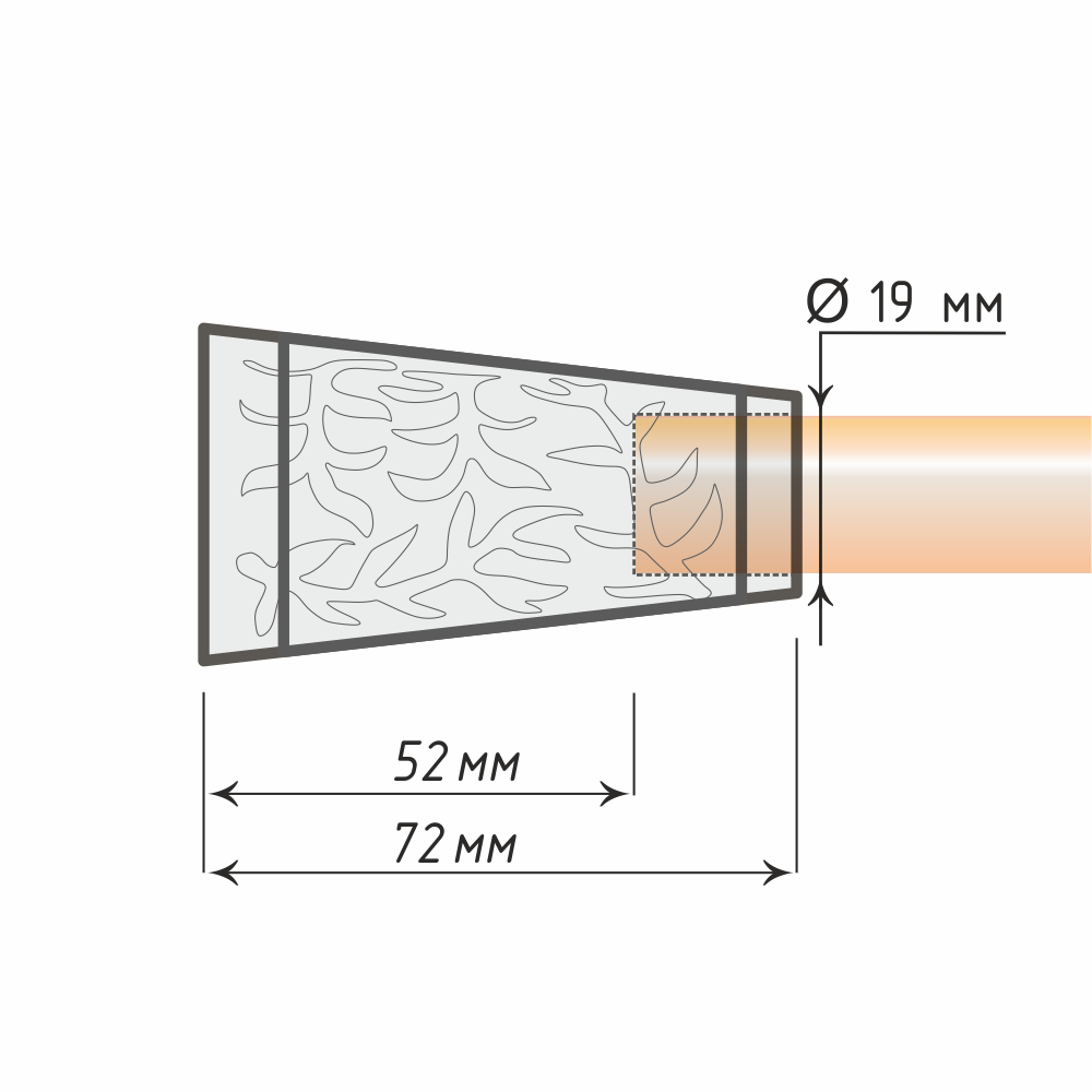Модель «Севилла» полностью использует преимущества декоративных изделий простой формы. Изысканный конический наконечник покрыт рельефным растительным узором. Такое дизайнерское решение «оживляет» обстановку и делает её более изящной. Без преувеличений – данное изделие подойдёт к интерьеру любого эстетического стиля, цветовой палитры и настроения.