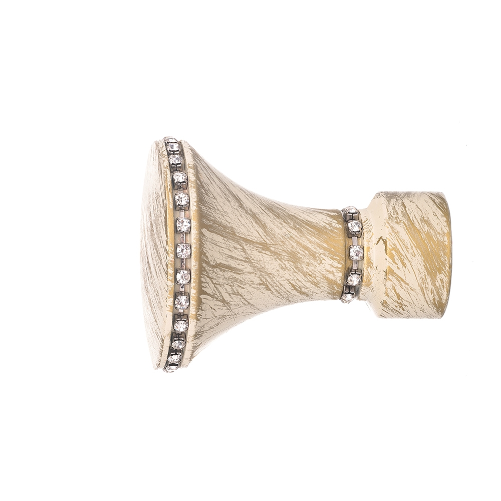 Наконечник имеет неповторимый вид: колоколообразная форма, украшенная двумя «поясами» из блестящих хрустальных вставок. Такой декоративный аксессуар не просто придаёт карнизу эстетичный вид, модель «Уфо» превращает оконную композицию в настоящее произведение дизайнерского искусства.