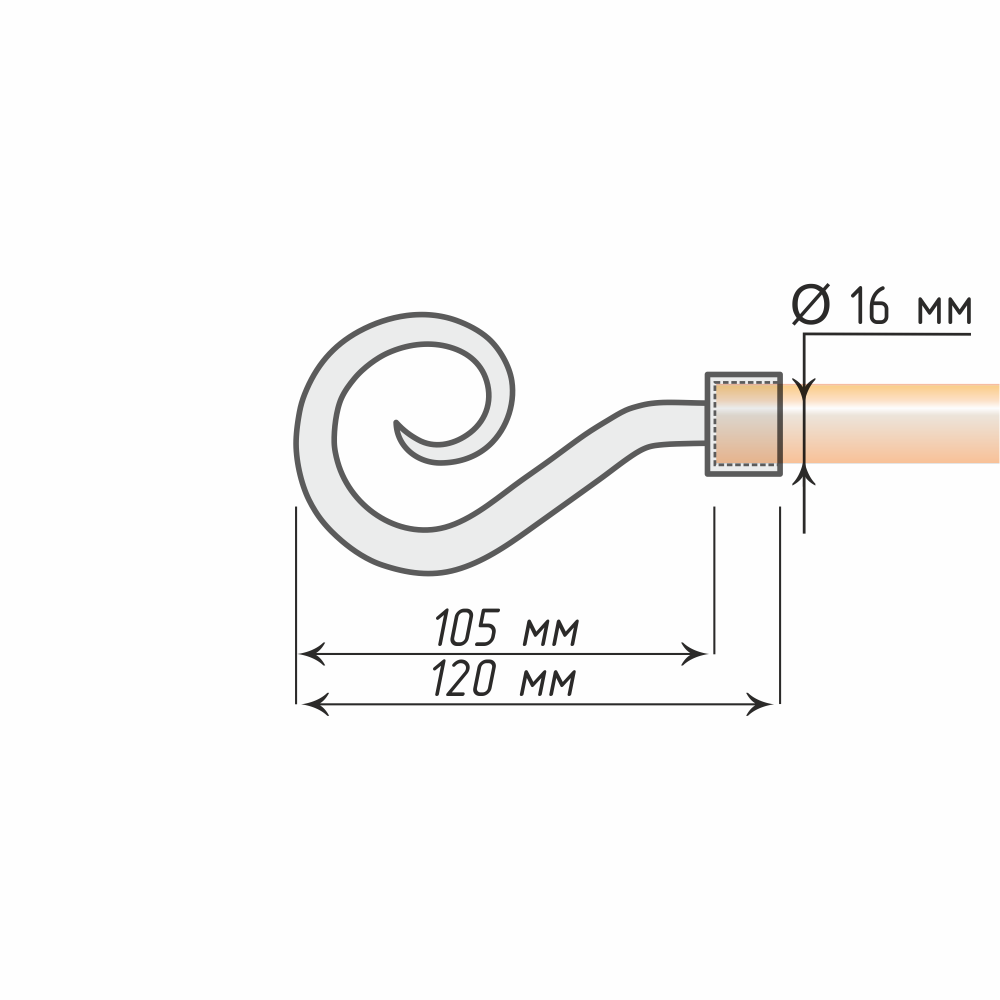 Грациозный наконечник, выполненный в форме спиралевидного завитка, удачно дополнит любой оконный декор. Волнообразный изгиб представленной модели станет гармоничным добавлением к традиционному убранству или «смягчит» интерьер, выдержанный в строгих тонах и прямых линиях.