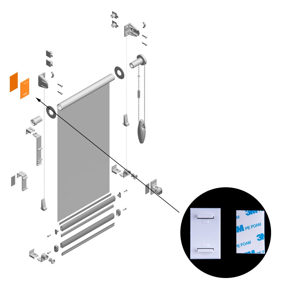 Пластмассовая платформа для скотча позволяет установить рулонные шторы модели «Мини» на глухую оконную раму без сверления.