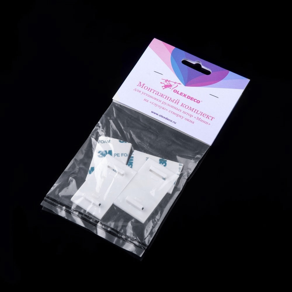 Платформы приклеиваются посредством скотча к поверхности оконной пластиковой рамы. Благодаря этому появляется возможность разместить рулонные шторы «Мини» на глухой створке, не производя сверления отверстий под саморезы. Изделия надёжно соединяются с кронштейнами, входящими в базовую комплектацию рольштор.