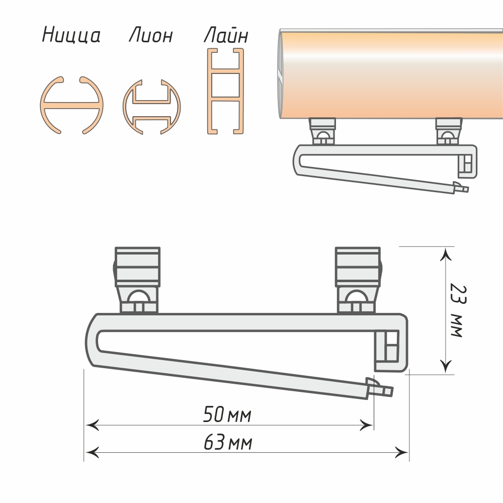 Х-образные бегунки обеспечивают плавное движение плечиков по рабочей полости карниза. Изделие шириной 50 мм предназначено для использования с карнизами на базе металлических профилей «Лайн», «Лион», «Ницца».