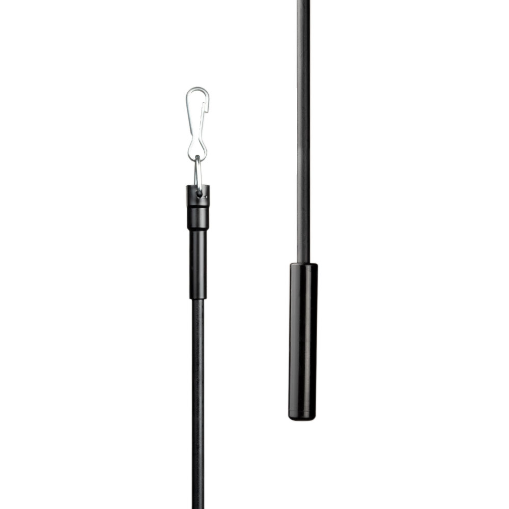 Использовать поводок просто: посредством специального карабина он крепится к крайнему бегунку или крючку.