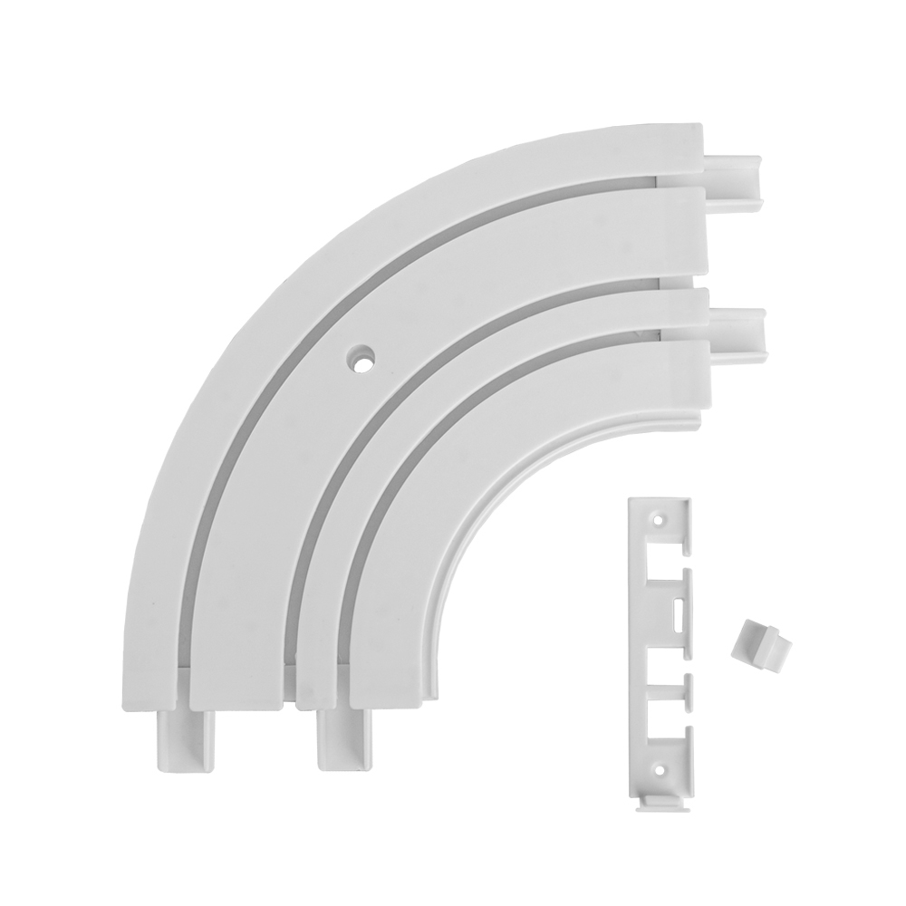 Пластиковый трехрядный поворот для потолочной пластиковой шины предназначен для эркерных окон.