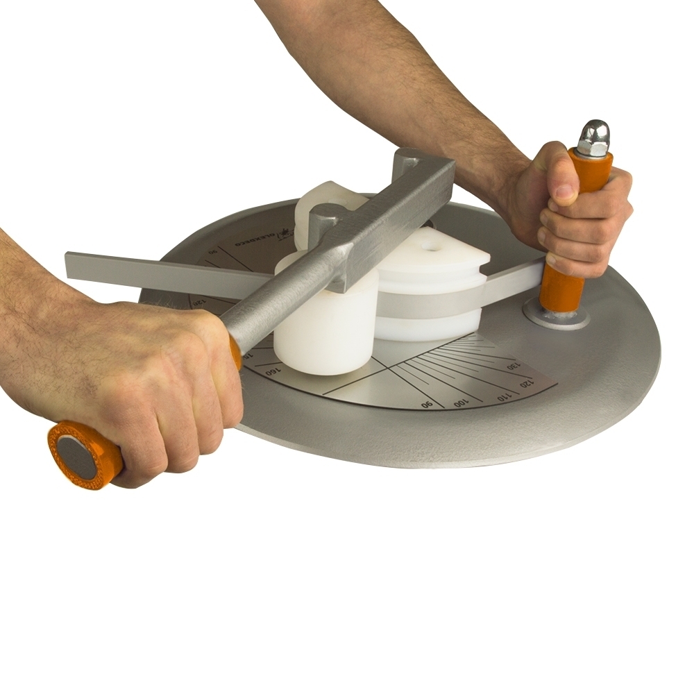Для сгибания профиль помещается лицевой стороной наружу в соответствующий паз центрального валика. Прямая часть профиля фиксируется с помощью металлического зажима. Изгиб производится посредством съёмного поворотного рычага