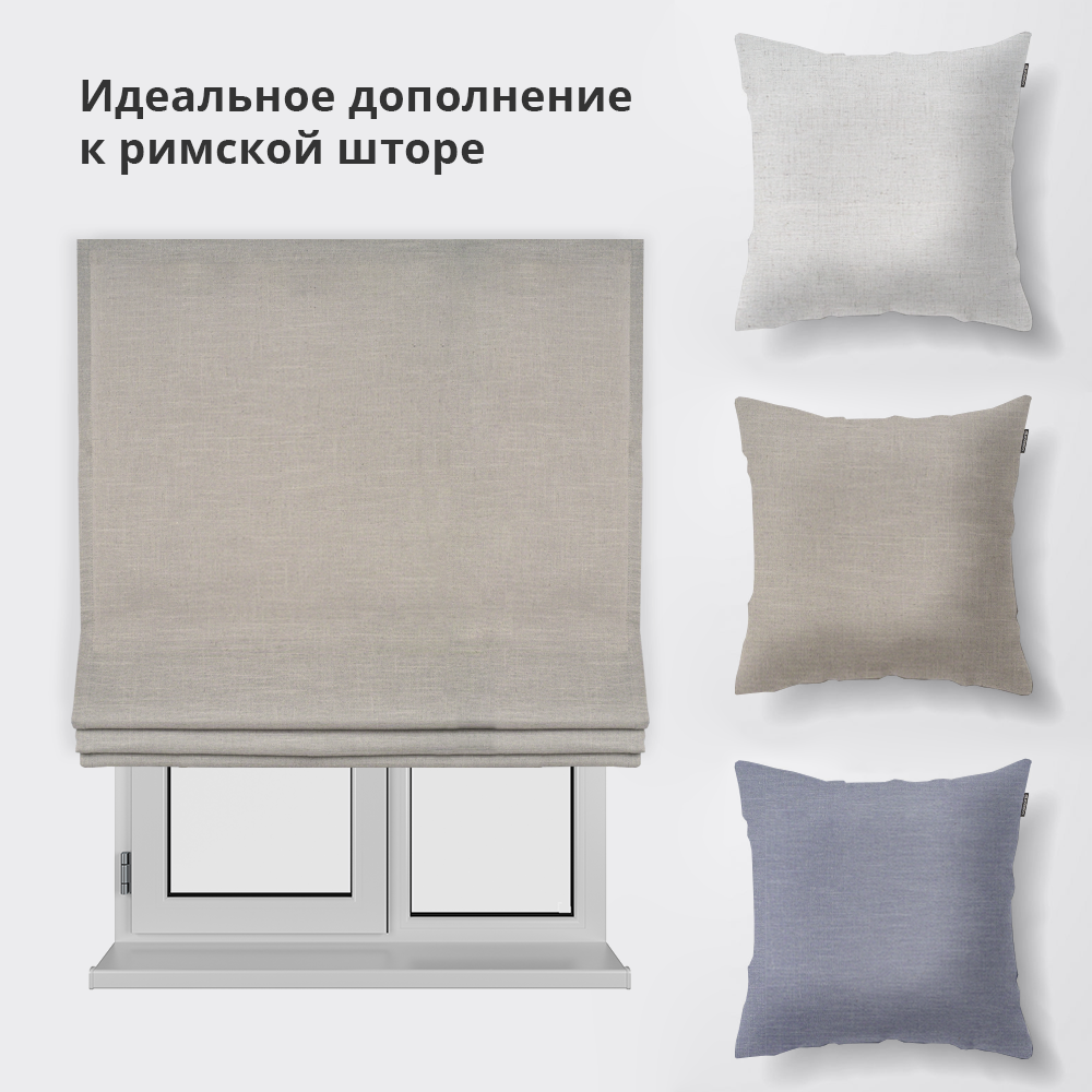 Ткань римской шторы – комбинированная, напоминающая натуральный лен, но за счет имеющихся синтетических волокон в составе материала, ткань не выгорает на солнце, в отличие от натурального льна, не вытягивается и не дает усадку при стирке, не деформируется и не скатывается, что позволяет ей долго сохранять свой первоначальный вид.