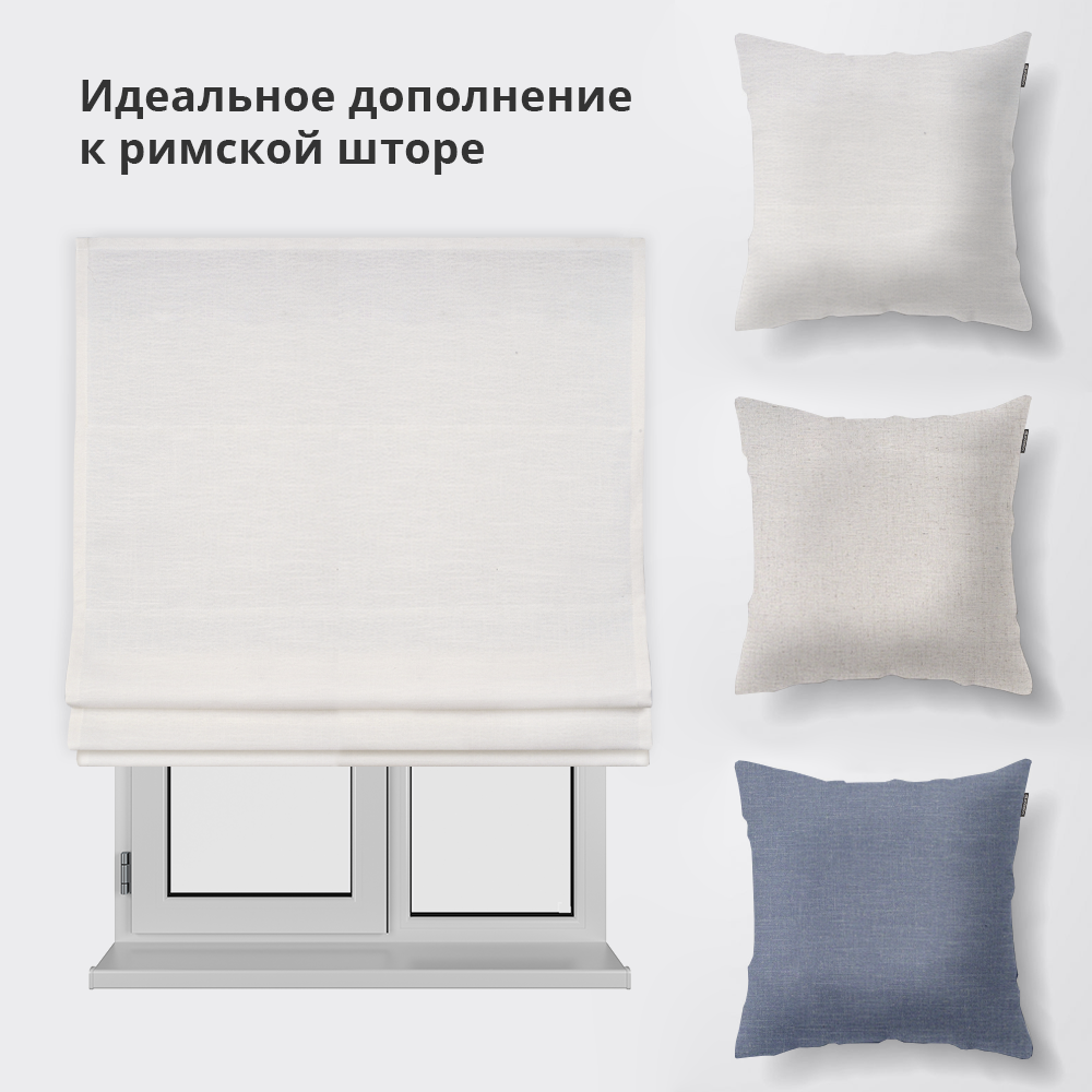 Ткань римской шторы – комбинированная, напоминающая натуральный лен, но за счет имеющихся синтетических волокон в составе материала, ткань не выгорает на солнце, в отличие от натурального льна, не вытягивается и не дает усадку при стирке, не деформируется и не скатывается, что позволяет ей долго сохранять свой первоначальный вид.