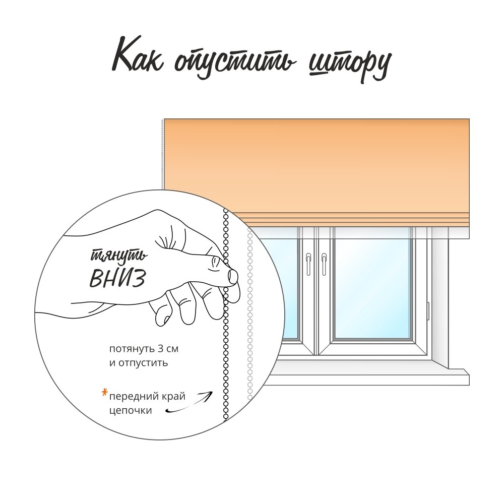Благодаря простой цепочной системе One Touch, осуществляется регулировка высоты шторы и тюля с помощью одной цепочки управления.