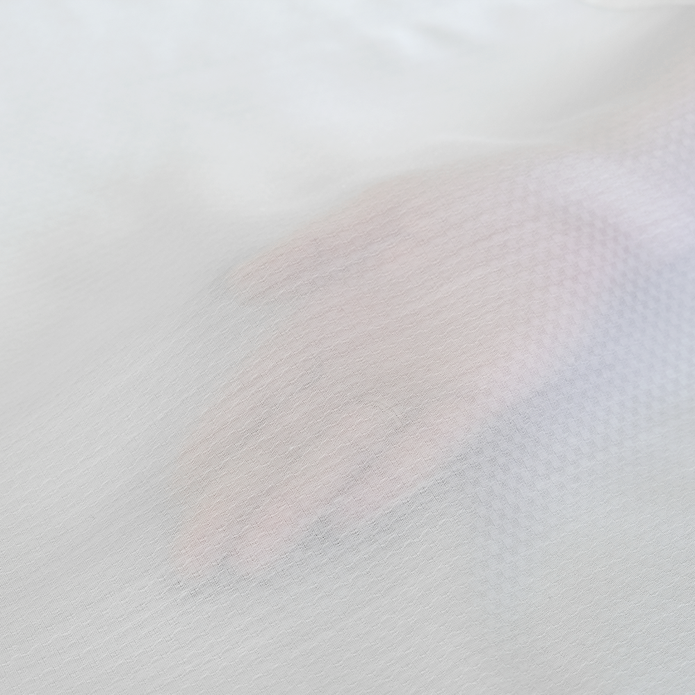 «Сирена» в белом цвете представляет собой легкую полупрозрачную ткань с повторяющимся паттерном, складывающуюся в красивый узор. Изготавливается на профессиональном оборудовании компании Toyota.