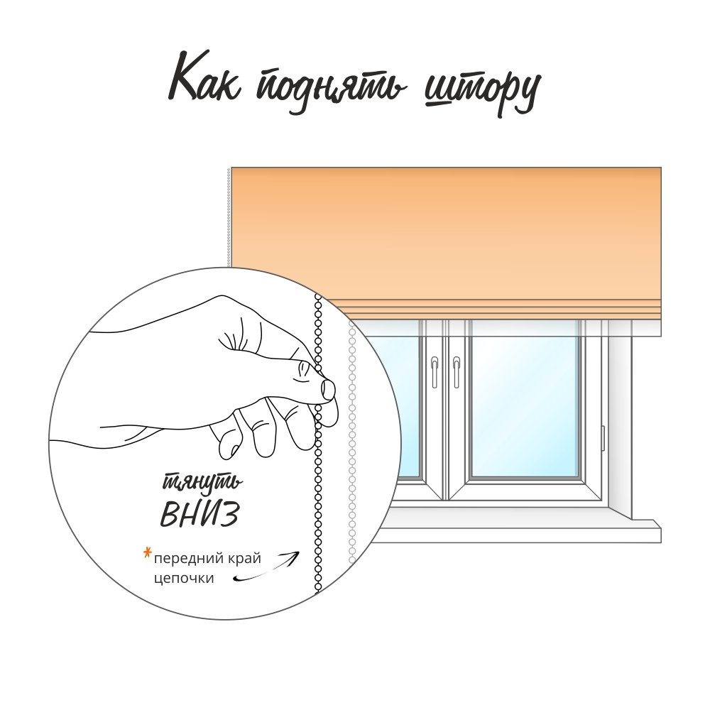 Благодаря простой цепочной системе One Touch, осуществляется регулировка высоты шторы и тюля с помощью одной цепочки управления.