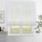 Римская штора «Родос» белого цвета выполнена из однотонной полупрозрачной ткани. Благодаря наличию в составе ткани синтетических волокон материал очень практичен в использовании: не выгорает на солнце, легко очищается от загрязнений и сохраняет свою форму после частых стирок.