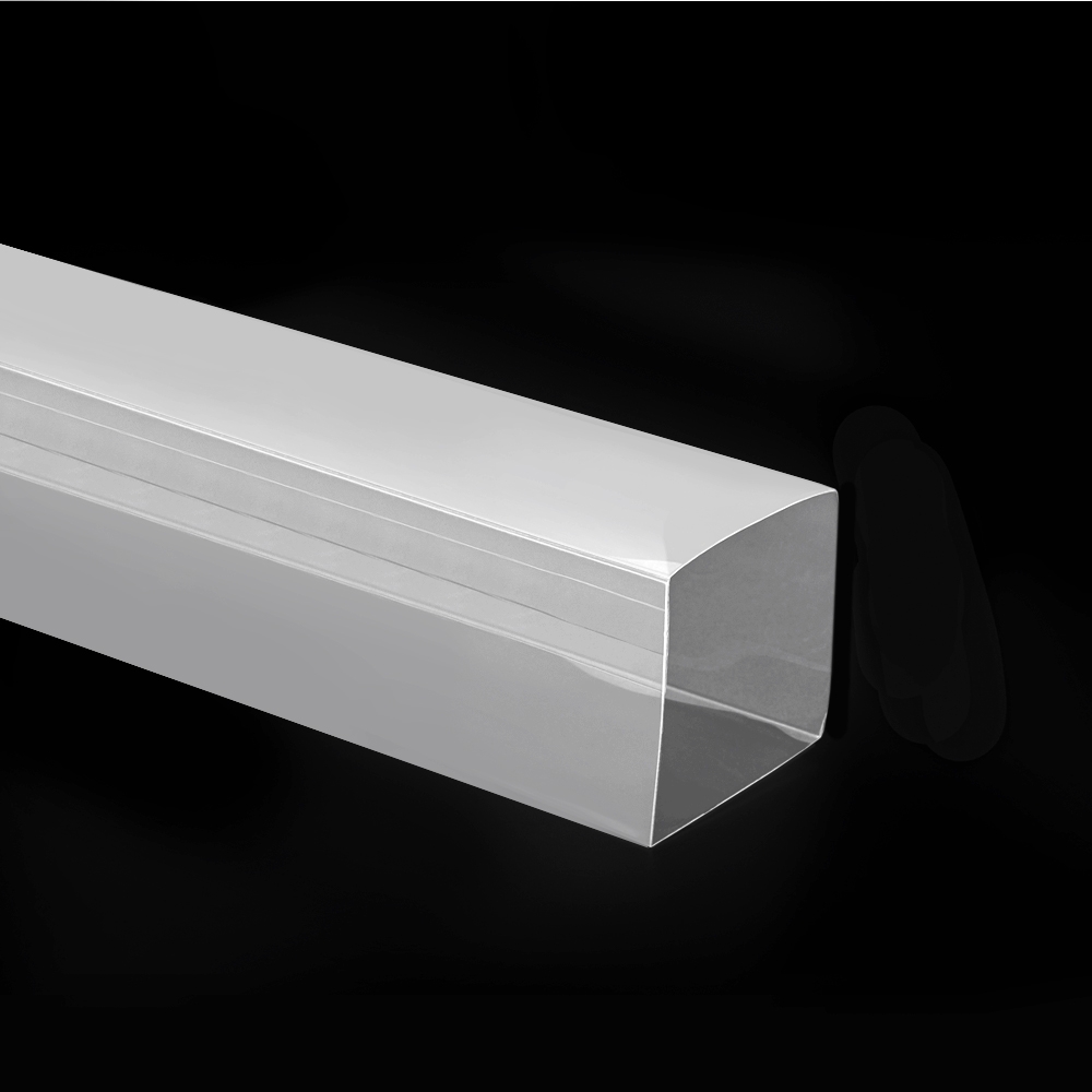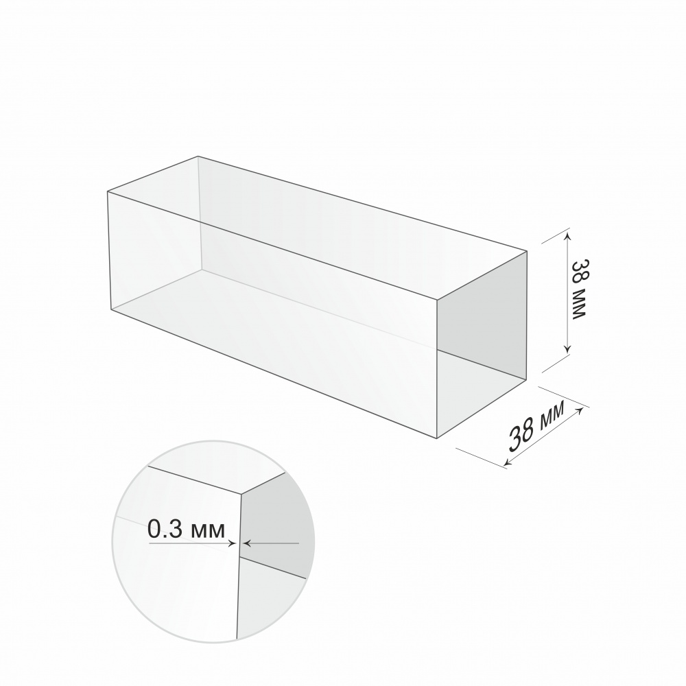 Специальный прозрачный короб из пластиковой пленки ПЭТ толщиной 0,3 мм поставляется в виде свернутого рукава. Чтобы сформировать короб 38х38 мм, достаточно отрезать рукав необходимой длины и с двух сторон вставить крышки-заглушки (приобретаются отдельно).