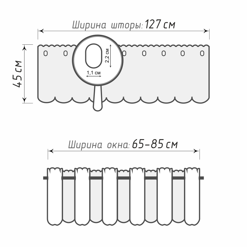 Благодаря своему небольшому размеру они прикроют лишь часть окна, позволяя дневному свету проникать в помещение.Обратите внимание! Готовые шторы-кафе могут иметь погрешность в размерах +/- 5% от указанных значений.
