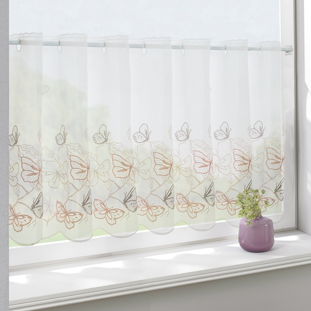 | Наименование для печати | Штора-кафе «Butterfly» персик с серым высота 45см Ширина 311см |