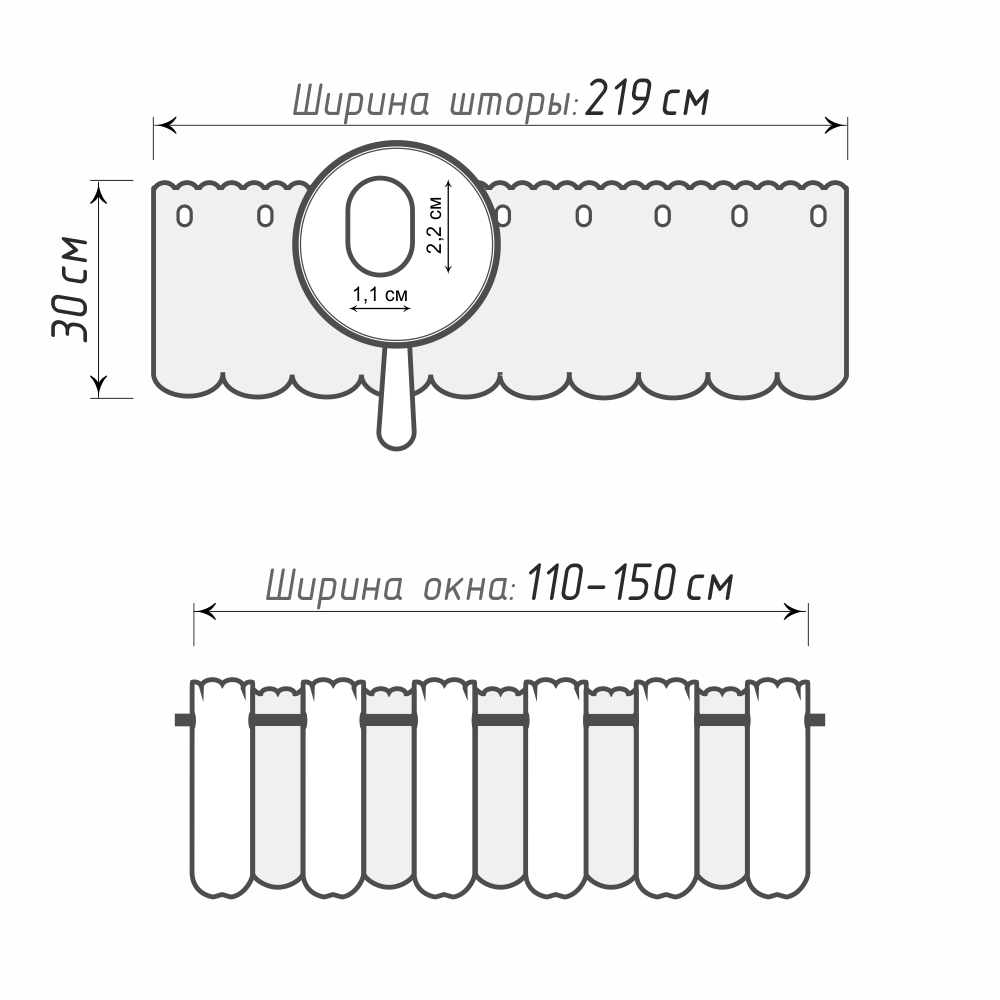 Обратите внимание! Готовые шторы-кафе могут иметь погрешность в размерах +/- 5% от указанных значений.