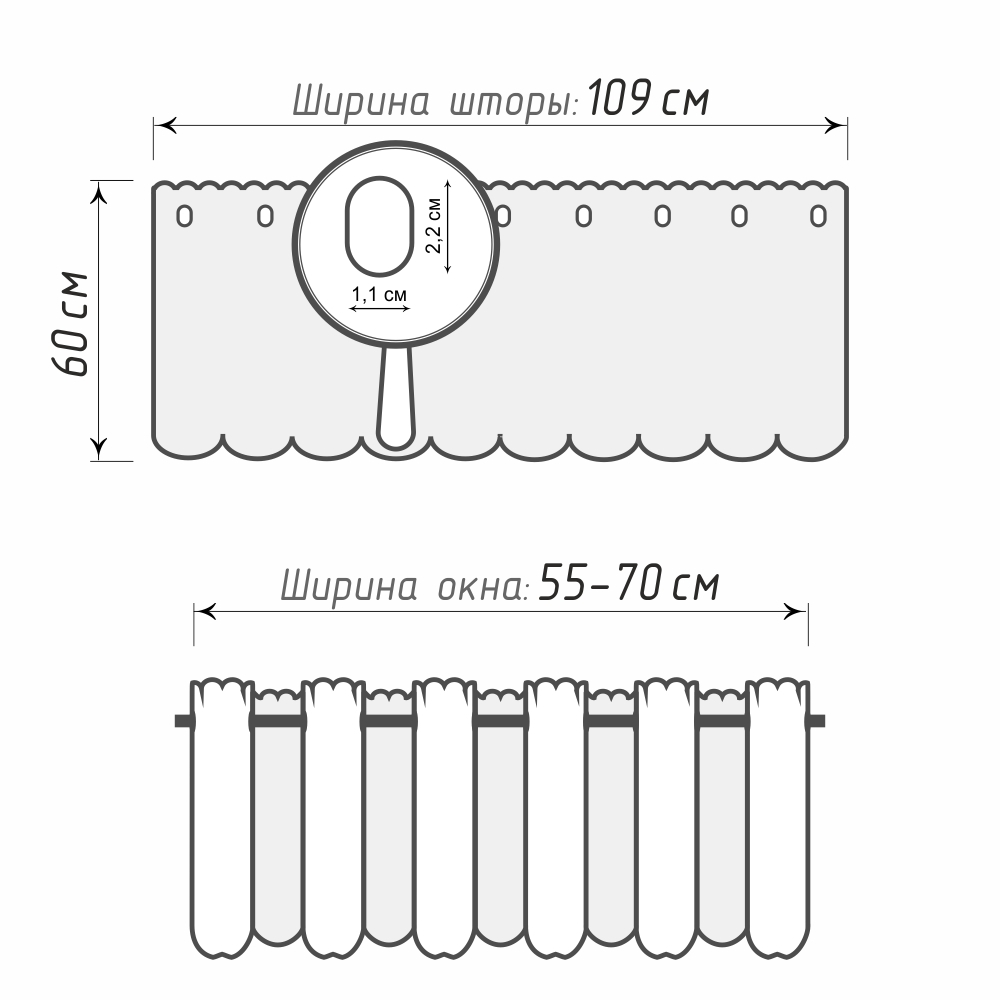 Шторы неприхотливы в уходе, они не будут выгорать на солнце и не сядут после стирки.Обратите внимание! Готовые шторы-кафе могут иметь погрешность в размерах +/- 5% от указанных значений.