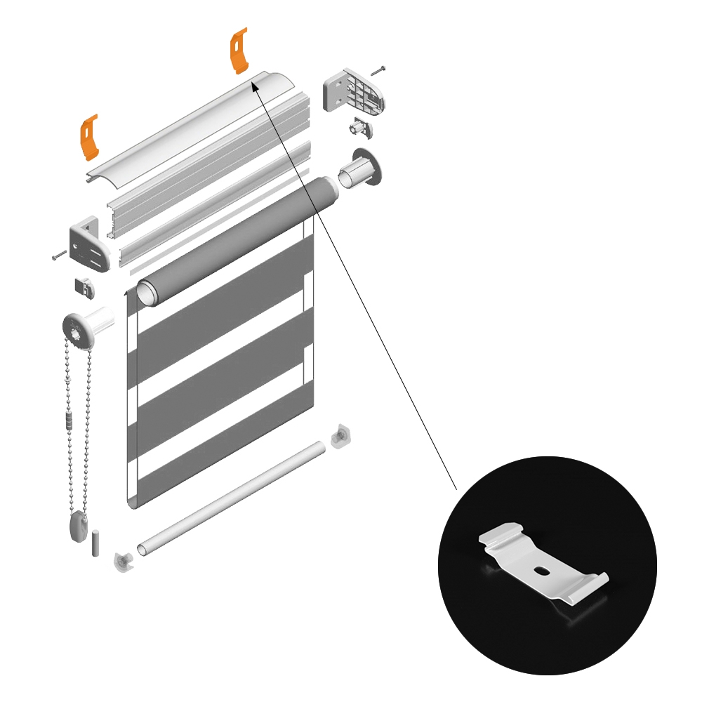 Основное достоинство металлической скобы в том, что она обеспечивает удобное и надежное соединение с монтажным профилем, который легко фиксируется на скобах нажатием до щелчка.Скоба используется для настенного или потолочного крепления кассетной рулонной шторы системы MGS.