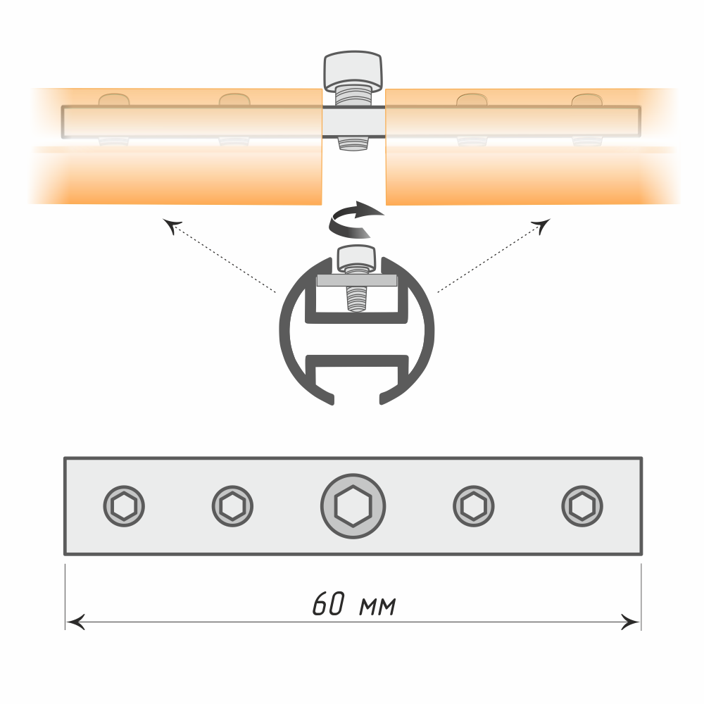 Обращаем внимание, что установка промежуточного кронштейна в месте соединения двух профилей необходима для надёжности использования составного карниза.