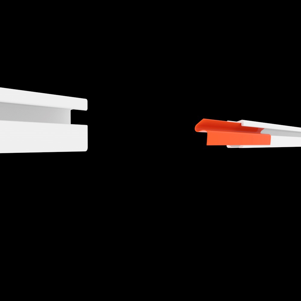 Соединительный мост помещается в верхнюю полость профиля (нижняя предназначена для шторных бегунков). «Колено» (выгнутая часть) моста располагается у нижней стенки паза, «ребро» изделия упирается в верхнюю стенку. Таким образом обеспечивается надёжная фиксация изделия внутри профиля.