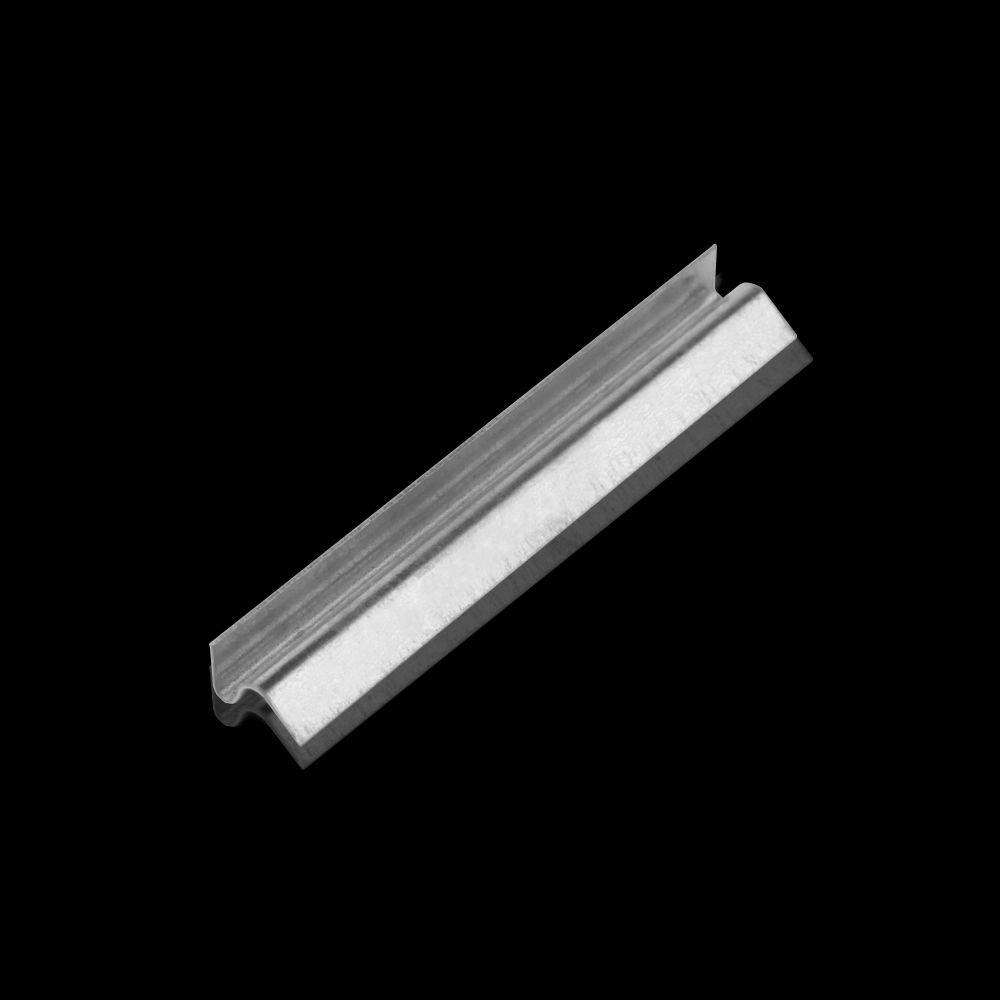 Соединитель в форме изогнутой металлической пластины используется для совмещения двух алюминиевых профилей «Тюль». Благодаря этому можно создавать профильные карнизы любой протяжённости.