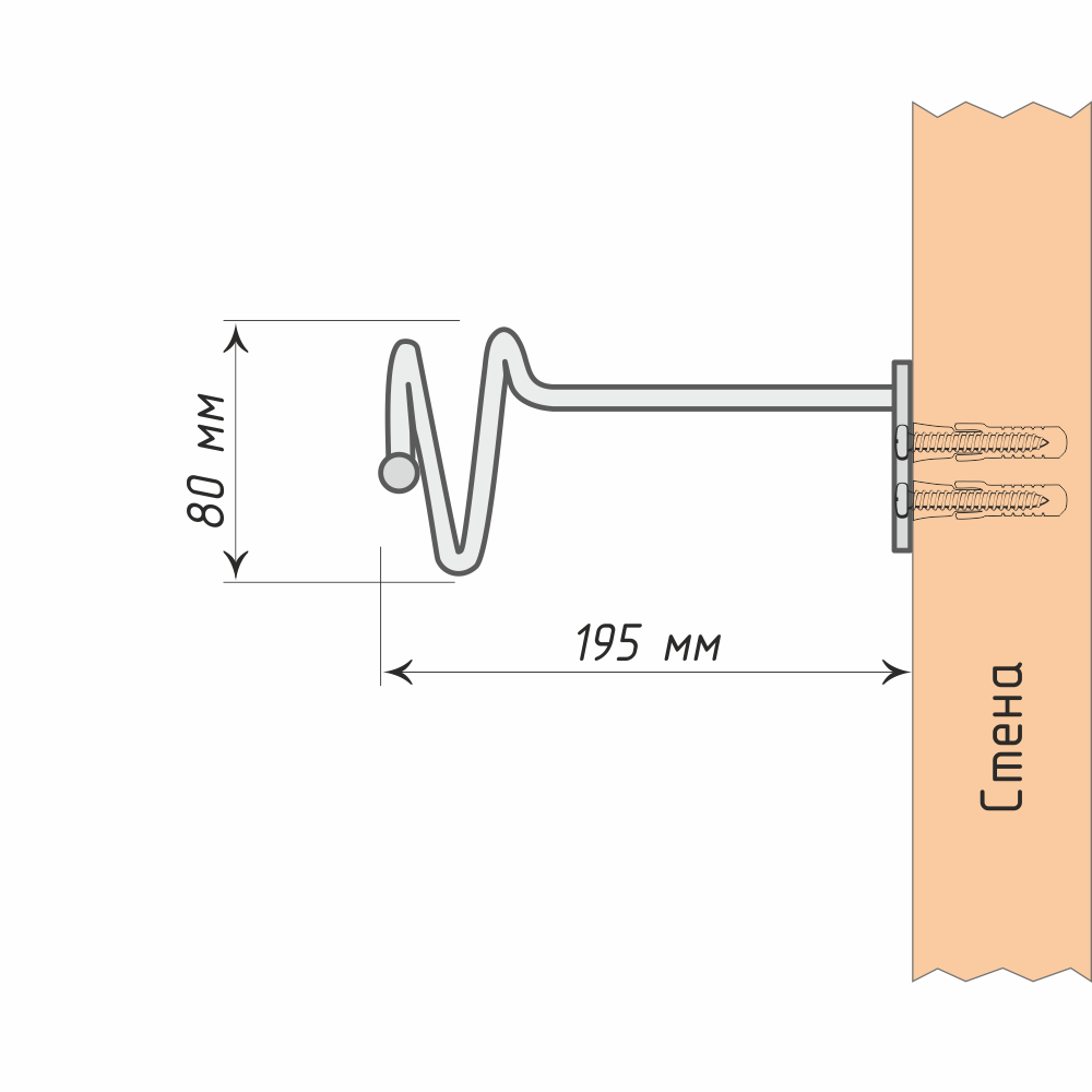 Драпировочные спирали имеют больший отступ от стены по сравнению с винтовыми крючками и шторными держателями. Отступ у данной модели - 195 мм. Это позволяет использовать их при размещении массивных объёмных портьер.