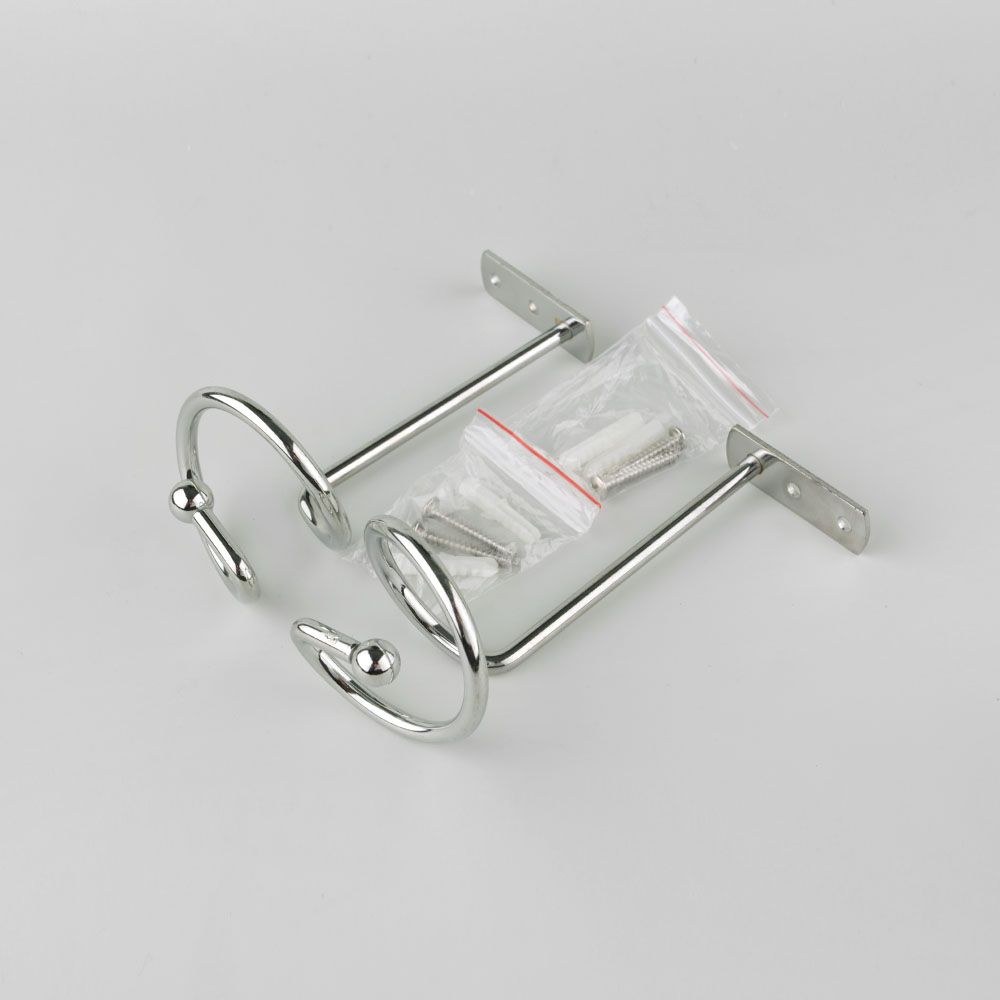 Металический , хорошо прокрашен белой краской . Ненавязчивый . Мило смотрится , в комплекте 2 держателя и крепёж к ним