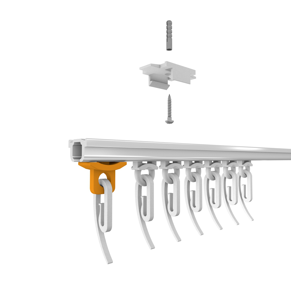 Узкий поворотный стопор совместим с алюминиевыми профилями: «Универсал», «Велкро», «Тюль» и «Римини».