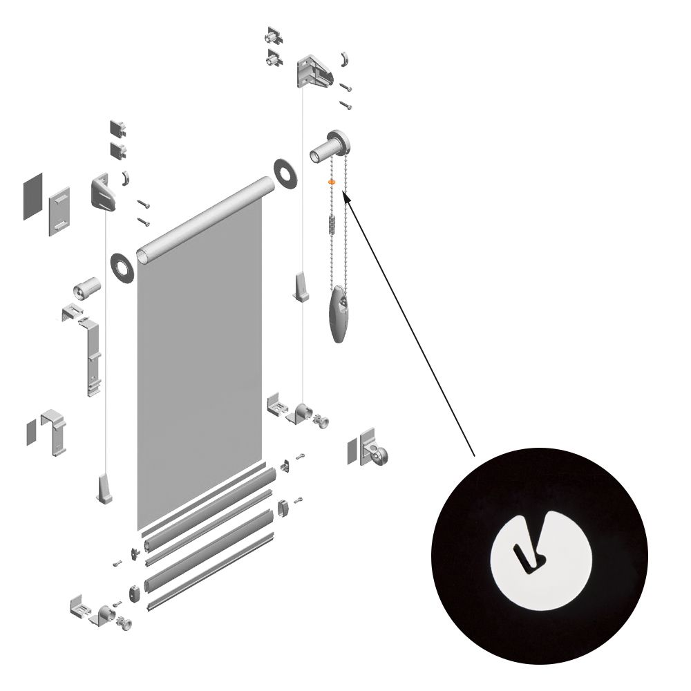 Установленное на цепочку, стопорное кольцо не позволяет ей свободно прокручиваться в поворотном механизме, фиксируя необходимое положение шторного полотна.