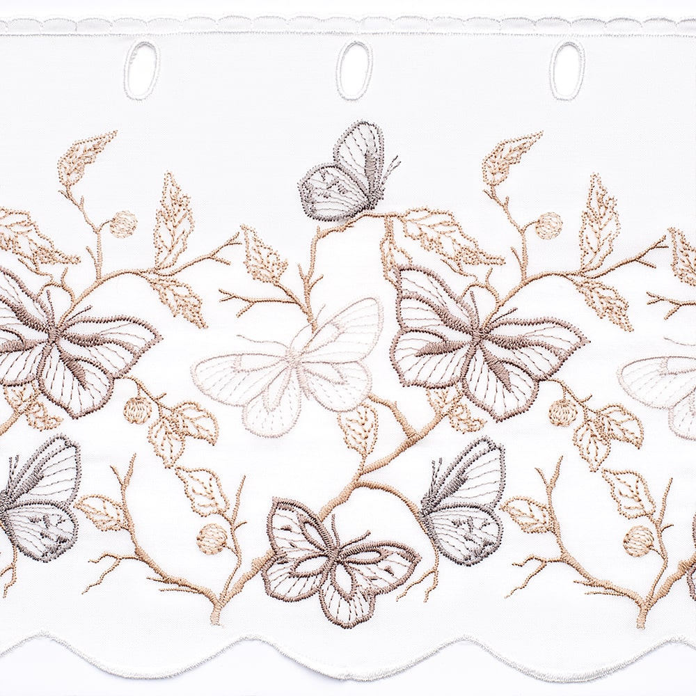 | Наименование для печати | Ткань для штор-кафе коллекция «Butterfly» бежево-серый На отрез высота 30см |