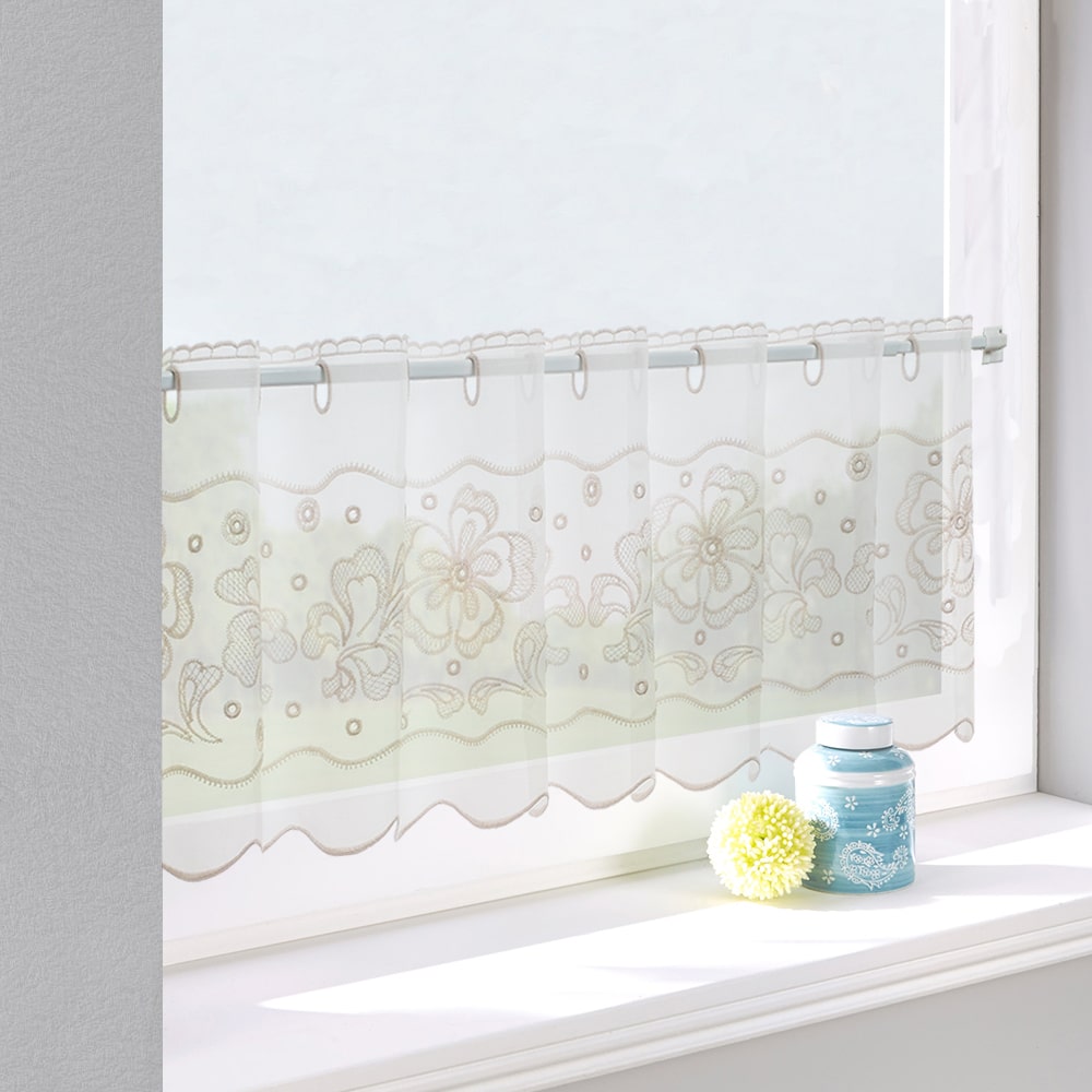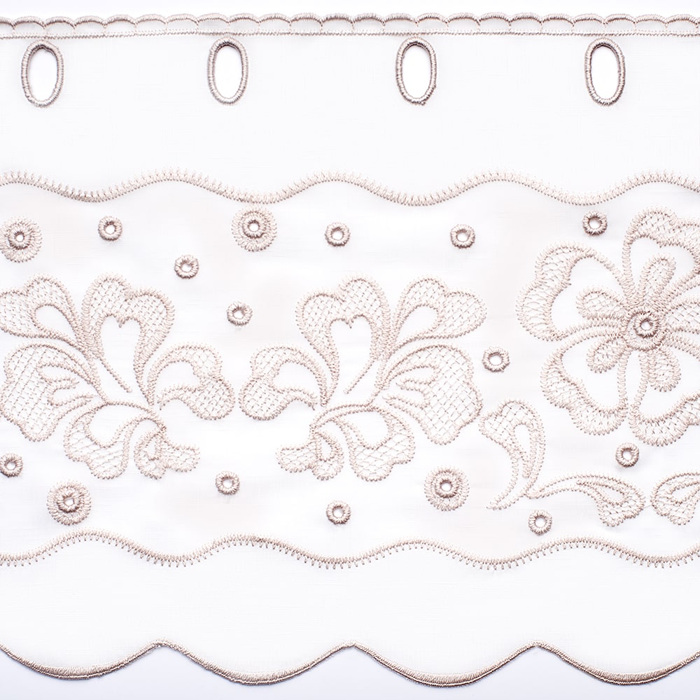 | Наименование для печати | Ткань для штор-кафе коллекция «Flowers» беж На отрез высота 30см |