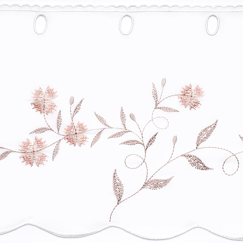 Мини-шторки из этого изделия нежно и одновременно стильно смотрятся в любом интерьере и придают романтическое настроение. Интересное и неизбитое сочетание цветов, персикового и серого, сделают акцент на ваших шторках.