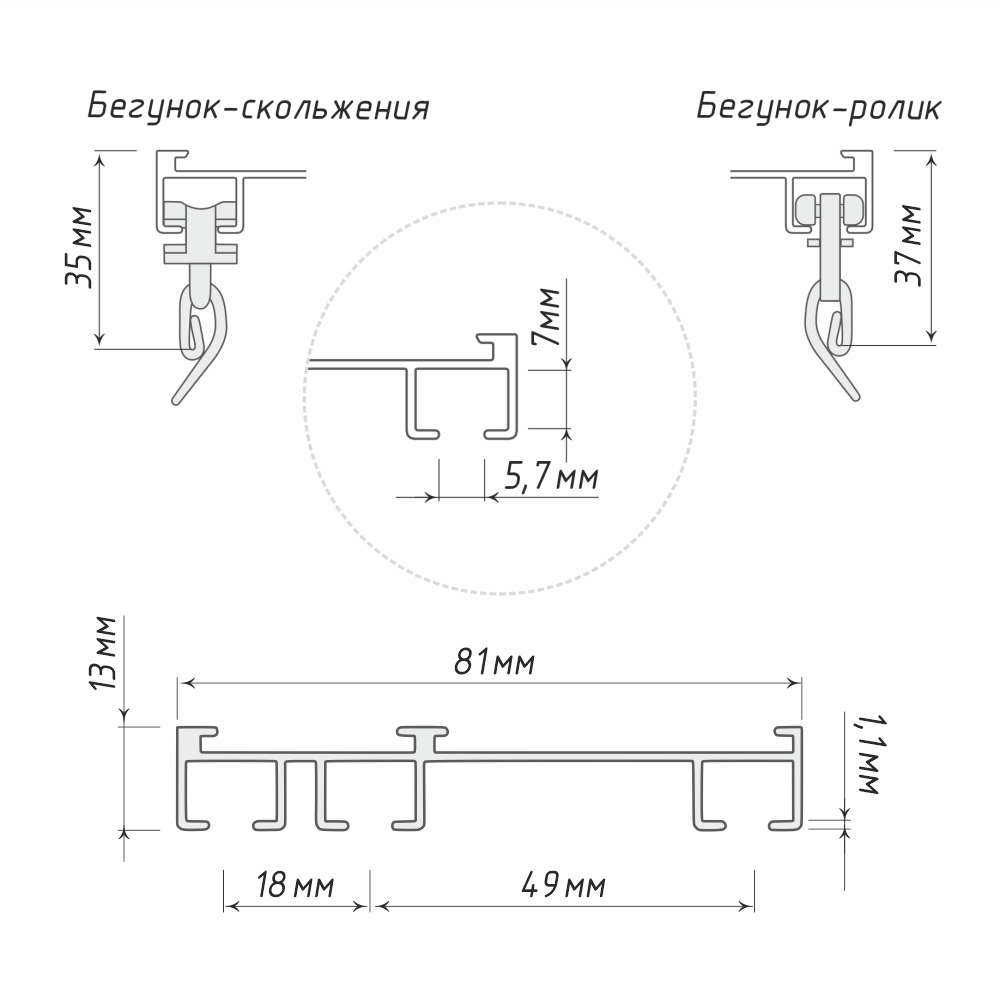 | Бегунки | Скольжения 6 мм. |