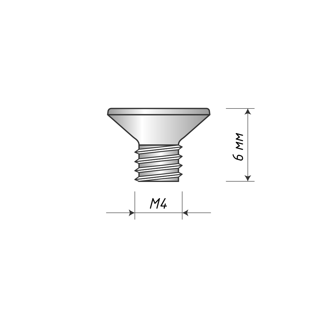 Винт М 4х6 мм с потайной головкой предназначен для фиксации Суппорта «Римини» при размещении Профиля «Римини».