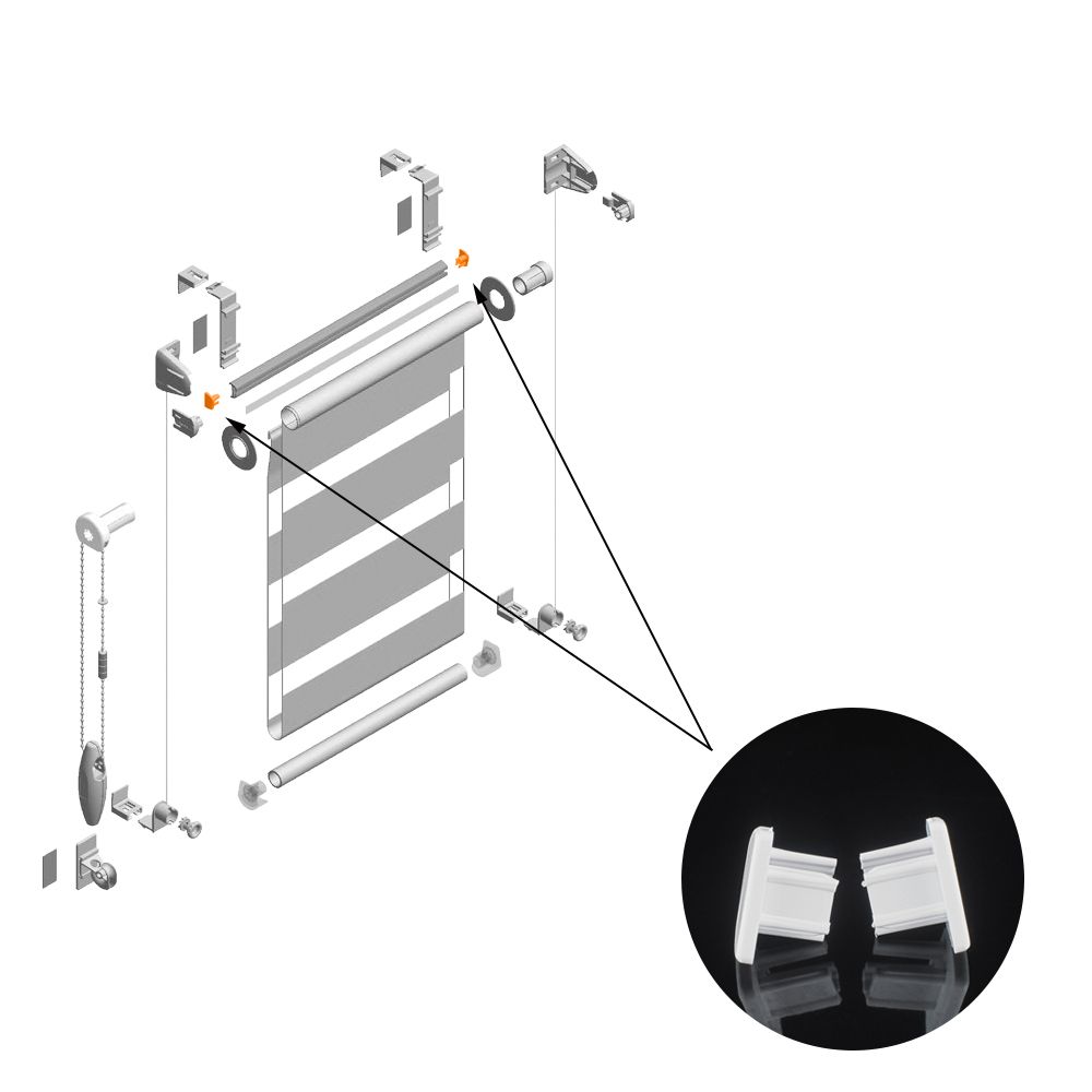 Предлагаемая заглушка предназначена для скрытия торцевых частей дополнительного профиля рулонной шторы «Мини День-Ночь Besta».