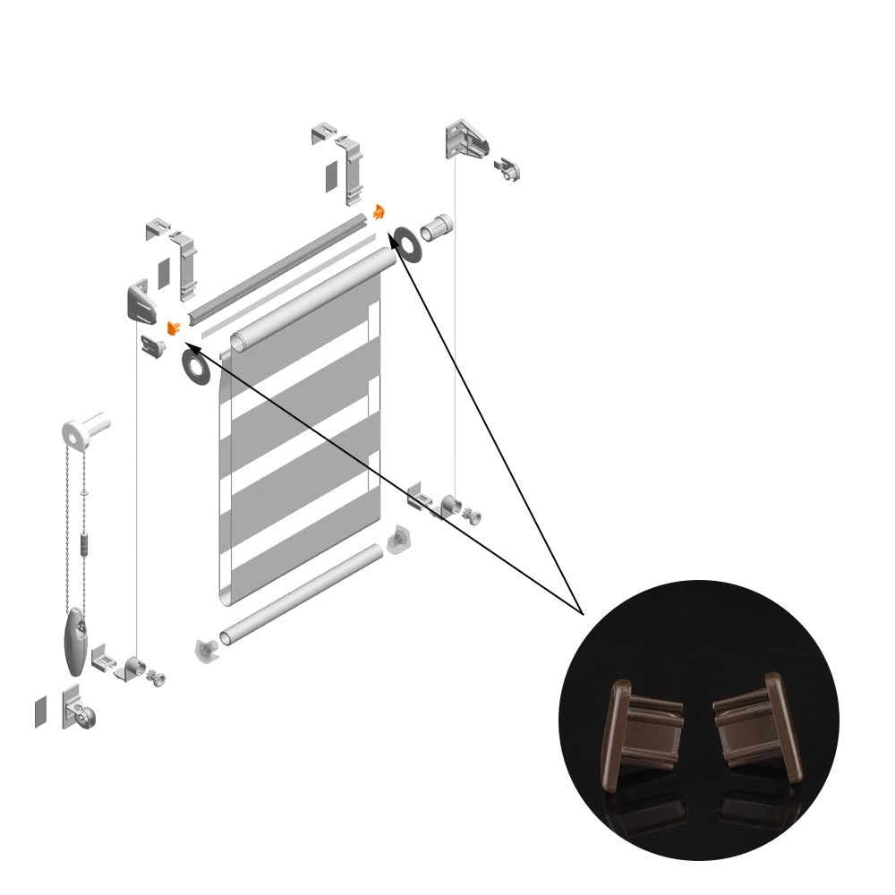 Предлагаемая заглушка предназначена для скрытия торцевых частей дополнительного профиля рулонной шторы «Мини День-Ночь Besta».