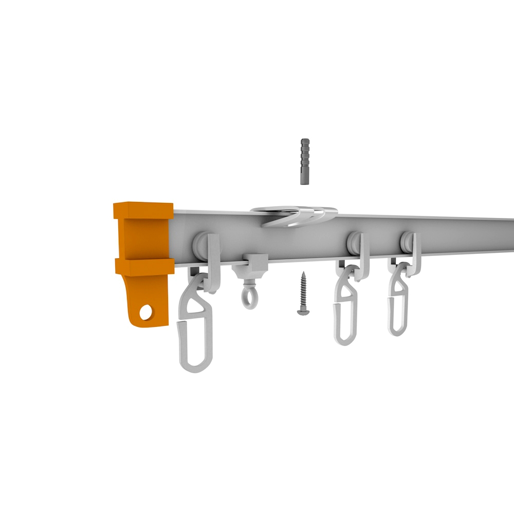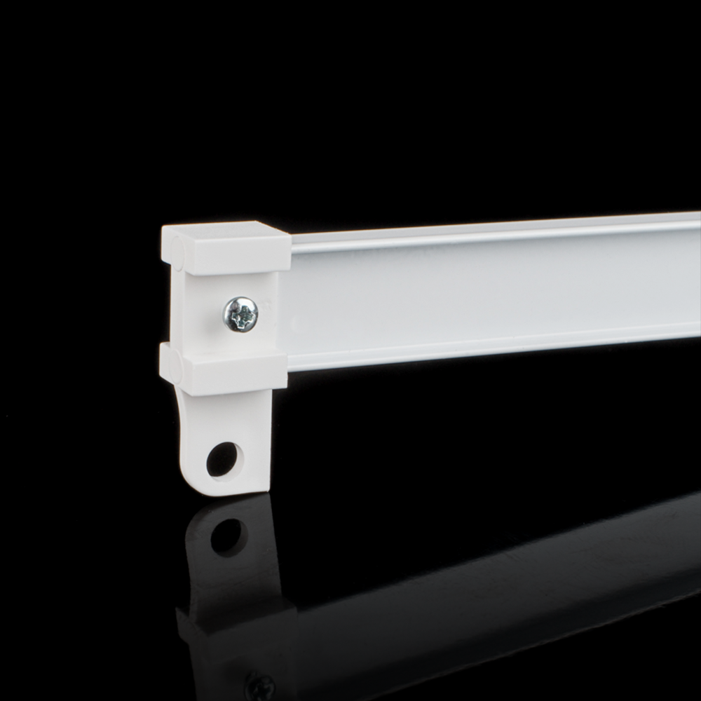 Изделие вставляется в торцевые полости алюминиевого профиля, препятствуя выпадению бегунков и завершая визуальный облик карнизной системы.