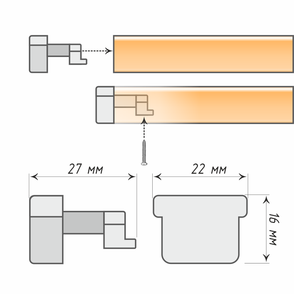 Стабильное крепление: заглушка фиксируется с помощью метиза, который «прижимает» ее к верхней плоскости профиля, гарантируя устойчивое положение даже при интенсивном использовании.