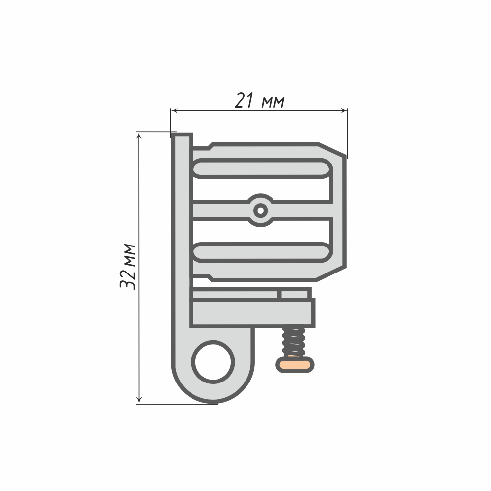 Ушко на нижней поверхности заглушки предназначено для неподвижного крайнего шторного крючка. Данный крючок удерживает занавеску в стабильном положении при зашторивании.