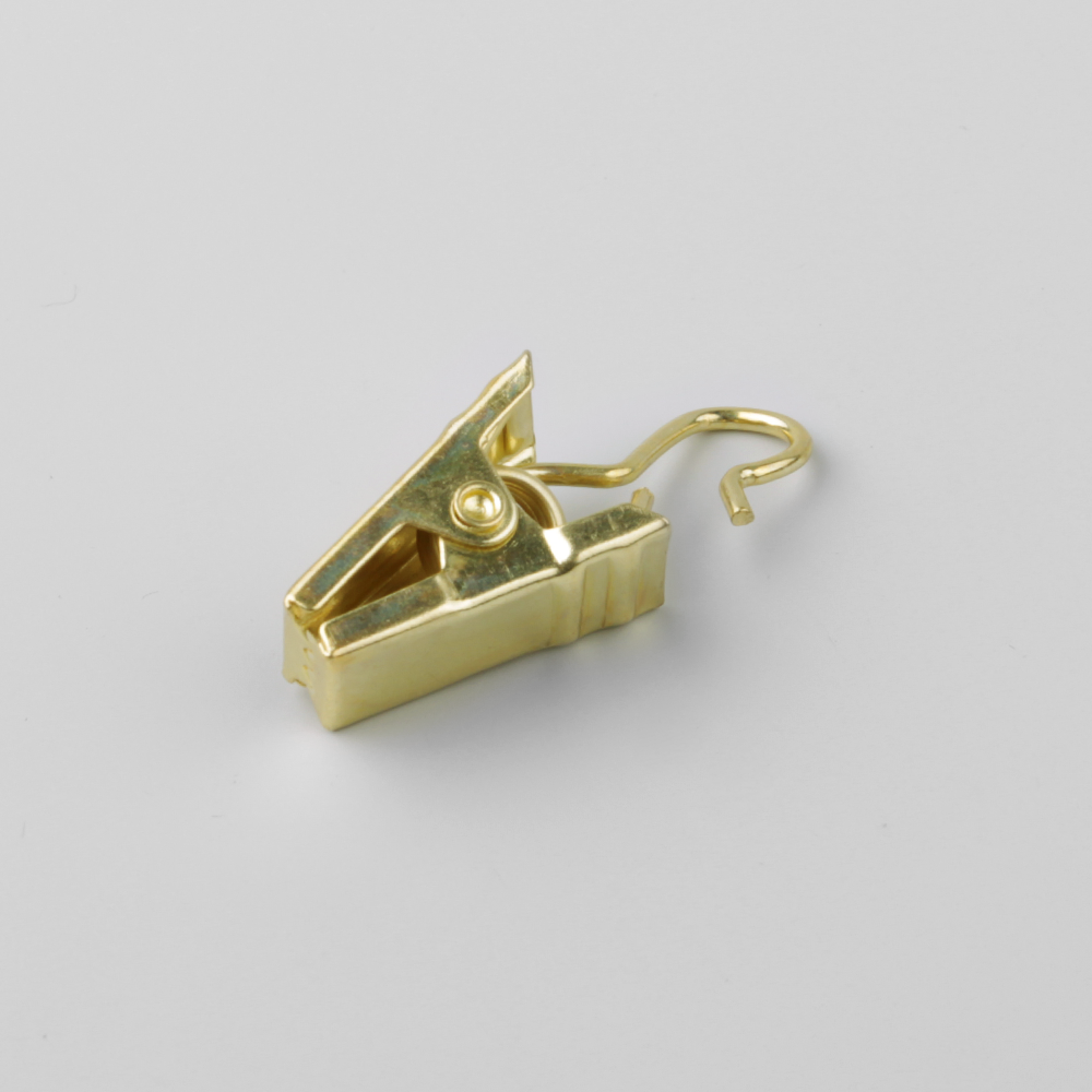 Металлический зажим «Крокодильчик» - классический способ крепления портьерной ткани к профильным карнизам и круглым кованым трубам.